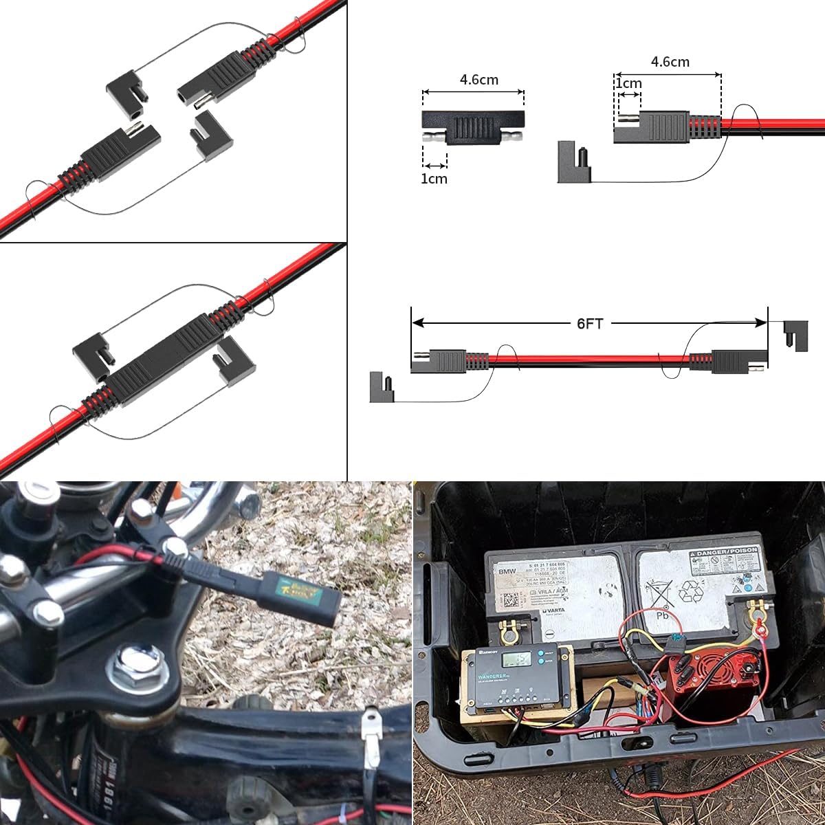 [Multiple Protection Cable] The atteched cable sleeve can protect the wire well to prevent wear, wire aging and flame. The SAE with dustproof and waterproof cap againsts rain and dust, keeping inside clean and dry when you not use. The extra reverse adapter make sure the polarity is correct.