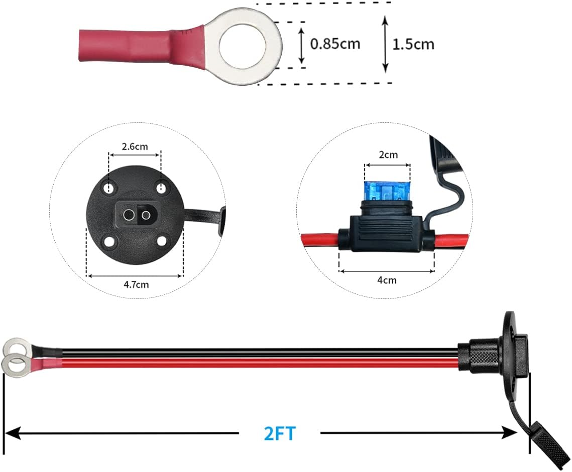 1*10AWG 2FT SAE Power Socket to O Ring Cable