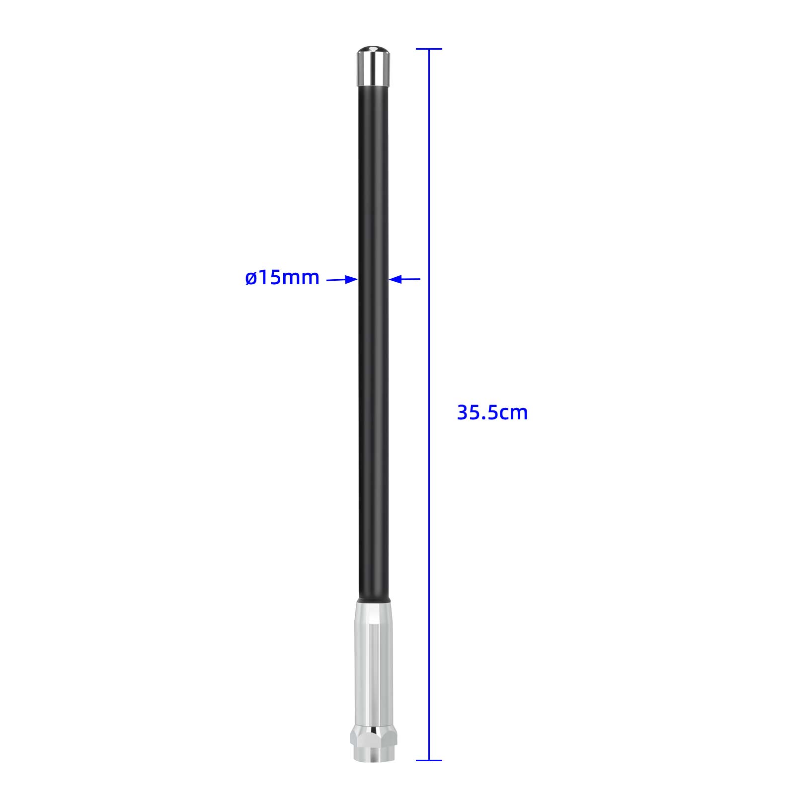 Frequency range: (VHF) 136-174MHz,Gain: 2.5dBi; (UHF) 400-470MHz,Gain: 3.5dBi;Maximum power: 50 watts, length:35 cm/13.8 inches; Antenna connector: UHF PL259 male connector;
