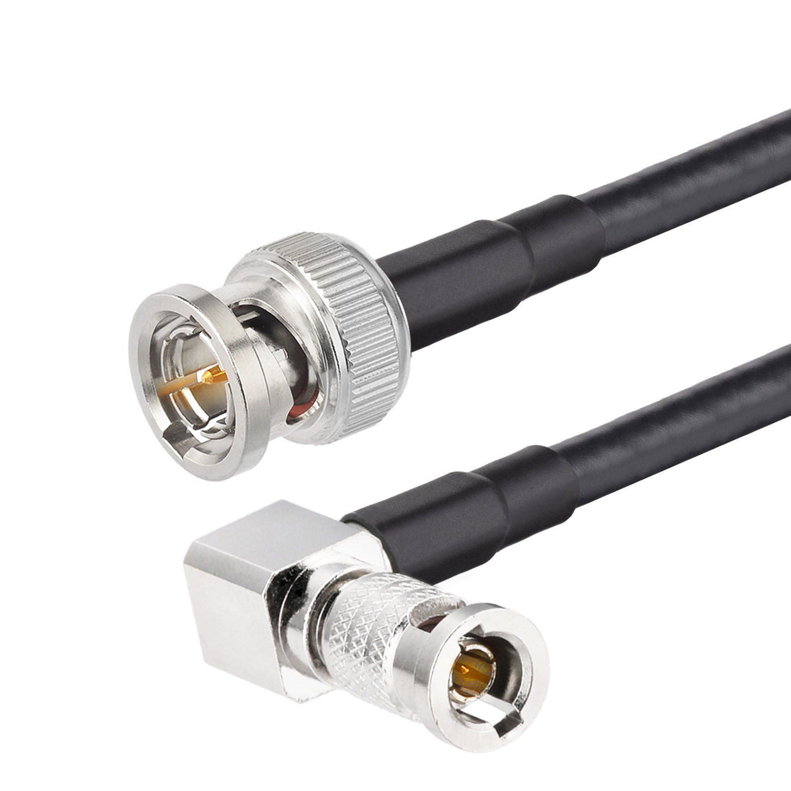 Connector 1: BNC Male Connector;Connector 2: HD BNC Male Right Angle Connector | Impedance: 75 Ohm | Cable Type: Belden 1855A;|Standard Definition SD-SDI (270 Mbps, ST 259) HD standard HD-SDI (1.483 Gbps, ST 292)3G-SDI (2.97 Gbps, ST 424) 6G-SDI (5.94 Gbps, ST 2081)