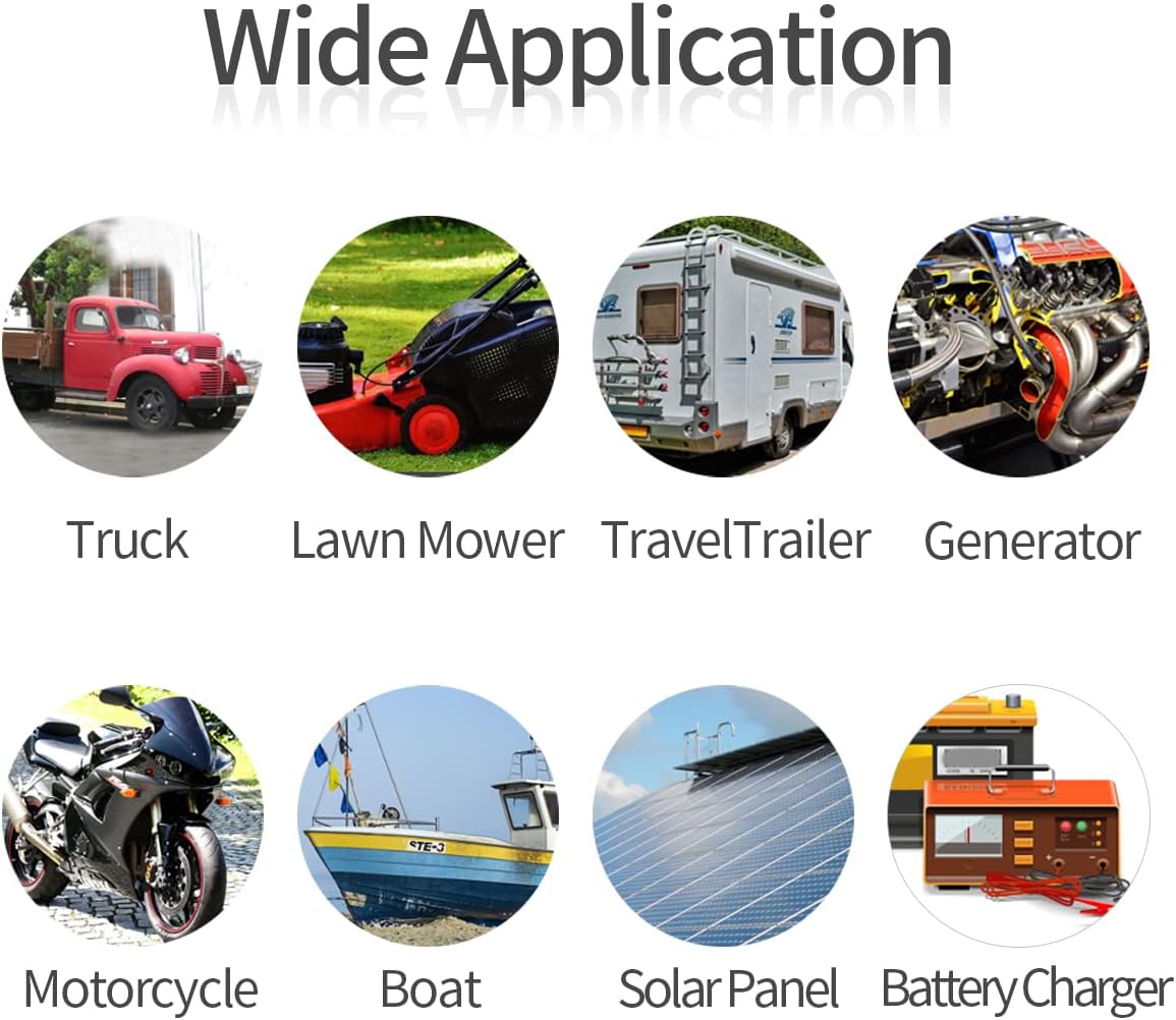 Widely used: SAE connectors are easily compatible with most battery packs connecting and disconnecting,,for expansion and maintenance of most batteries and chargers with SAE quick release connectors. Widely applicable to equipment that requires SAE interface connections such as batteries, solar panels, lawnmowers, motorcycles, yachts, ATVs, RVs, tractors, etc.