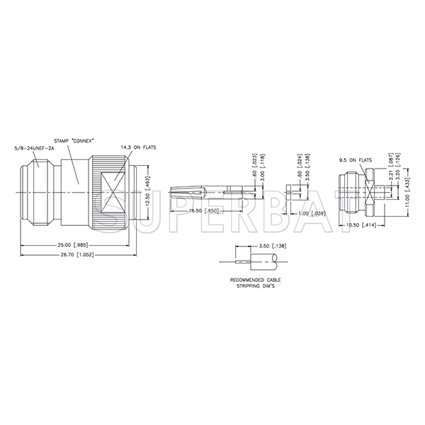 50 Ohm Superbat N Type Jack Female Straight Solder Connector for .085 Semi-Rigid Cable