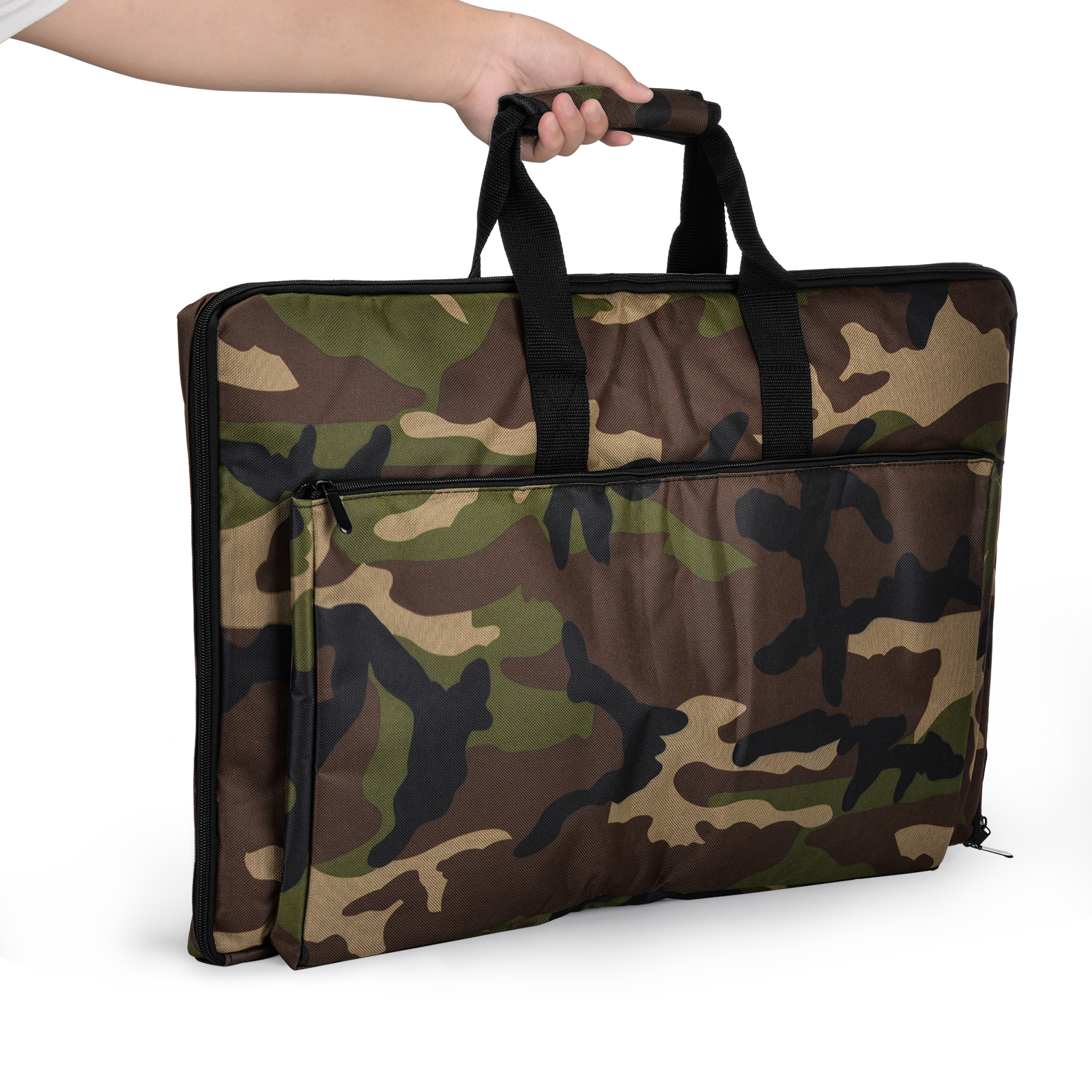 The surface fabric of the storage bag is 600D Oxford cloth, lined with 210 lining, 64cm long, 42cm high, 5cm wide.