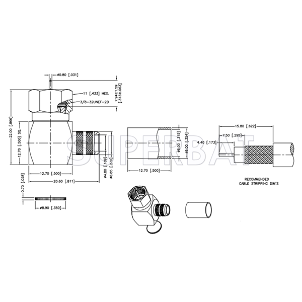F-Type is a 75 Ω connector featuring 30 dB return loss at 1GHz. Additionally, these connectors accept .022-.042 in. diameter conductors and comply with a 3/8-32 thread specification.