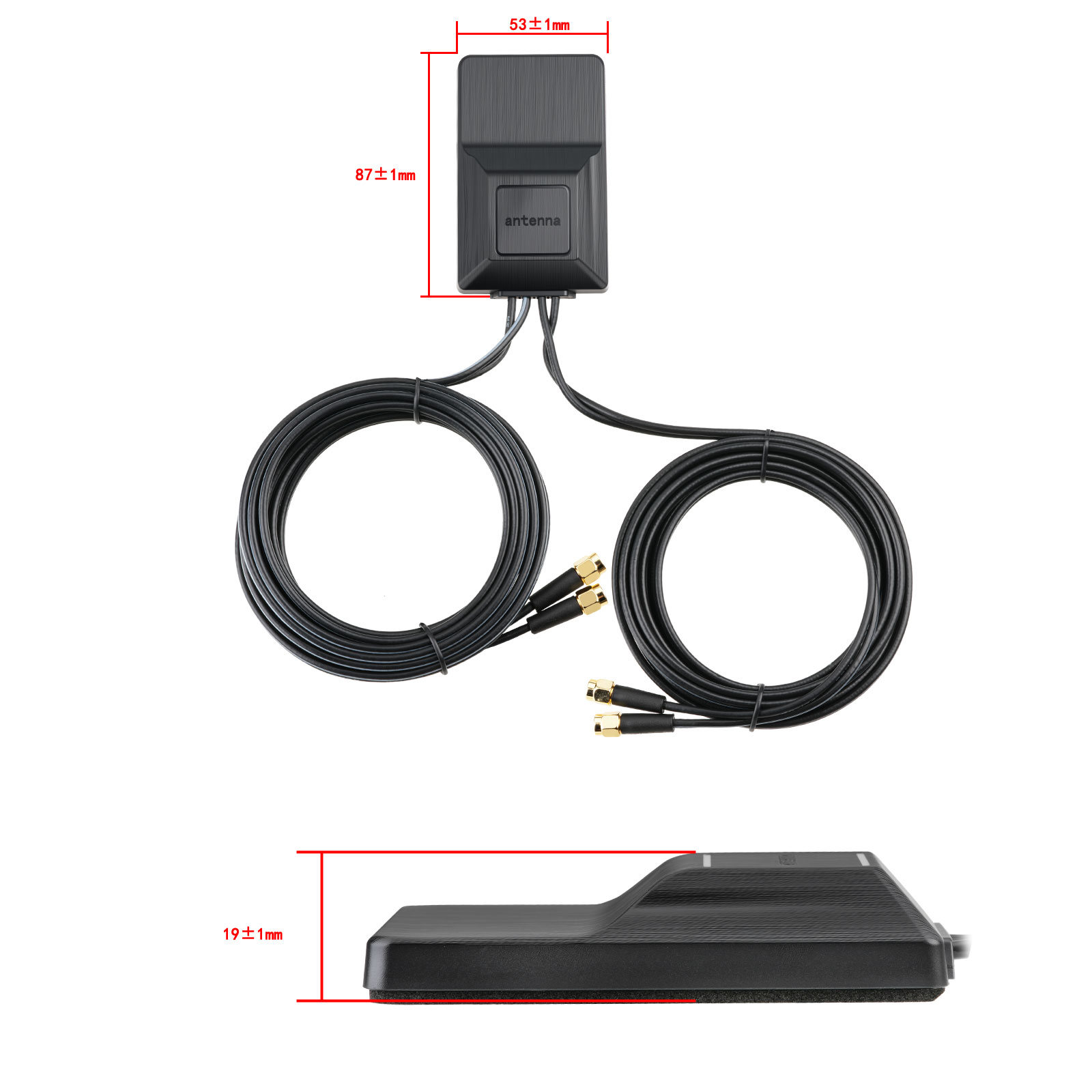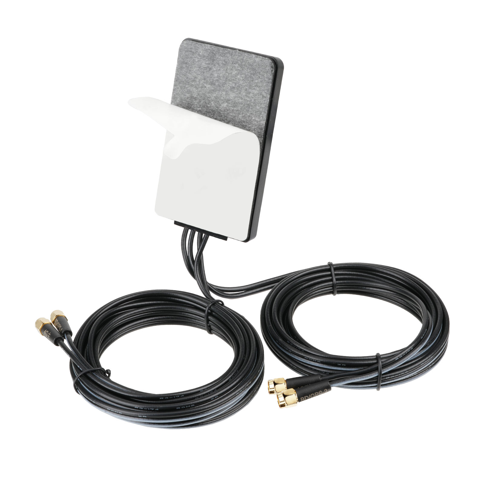 Includes 3M RG174 cable with four SMA connectors; Horizontal mounting optimized for GPS/BeiDou signal reception.IP65 waterproof rating;Vibration resistant (sine sweep 10-50Hz)