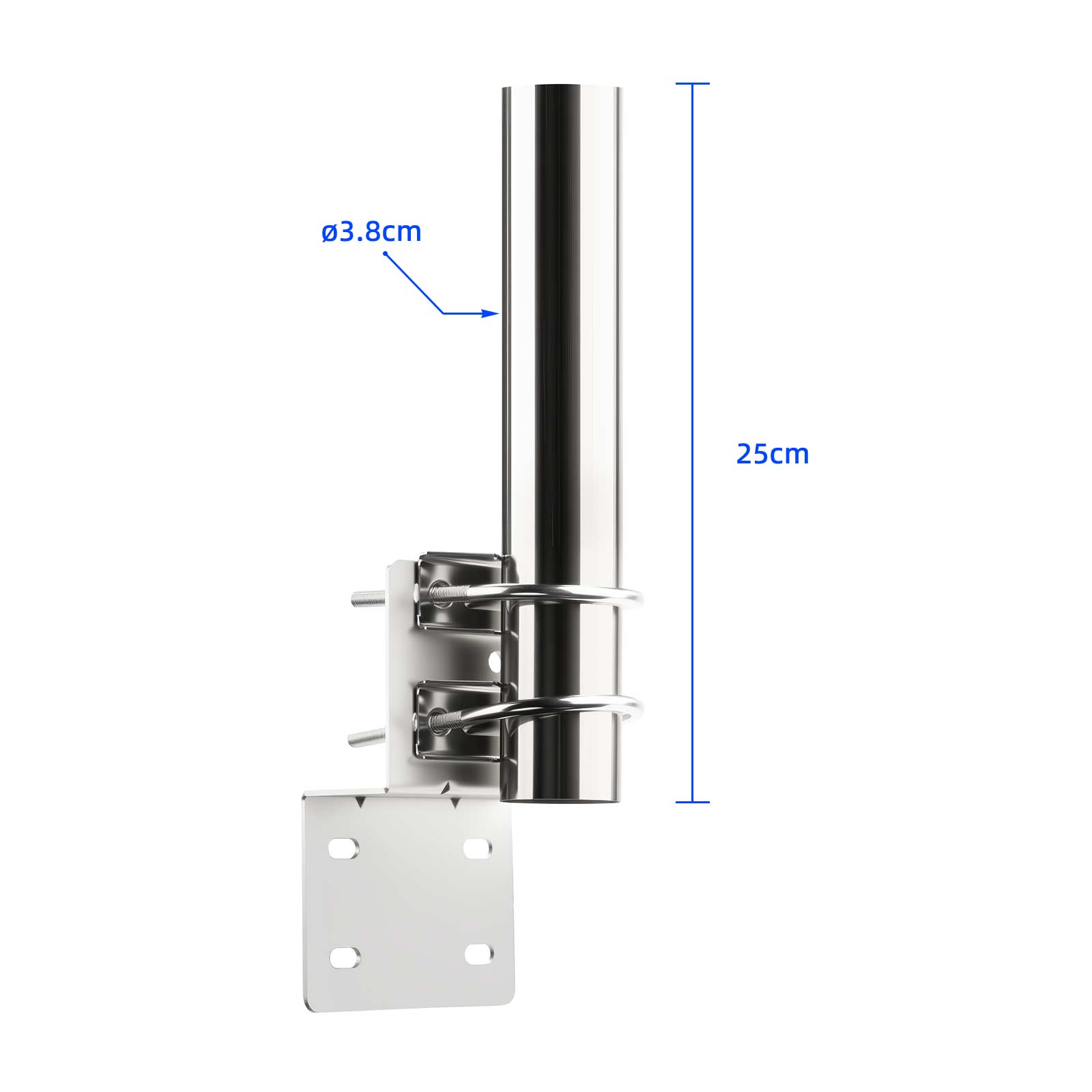 Heavy-duty stabilised design – 2mm thick steel bracket with widened base plate, secured via dual-clamp U-bolts and four screws, ensuring exceptional stability and durability in harsh outdoor conditions.