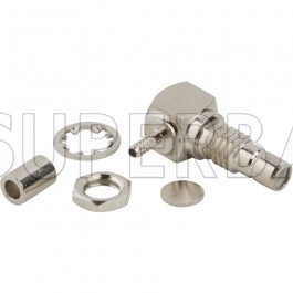 SMB Jack (male pin) Right Angle Crimp Coaxial Bulkhead Connector 50 Ohm for RG 178