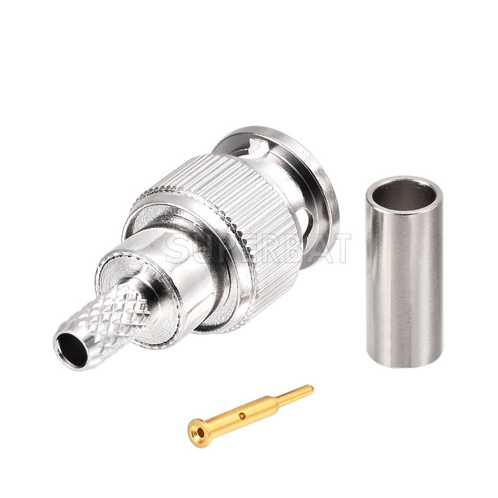 Mini BNC 75 ohm full crimp straight bulkhead jack This rear mounted jack has a gold plated crimp centre contact, the outer contact is nickel plated. Both centre contact and crimp sleeve are annealed for enhanced performance. Suitable for use with RG179 and similar cables in group AB.