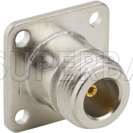 Series: N Termination Type: Terminal Gender: Jack , Female Polarity: Standard Body Style: Straight Mount Method: 4 Hole Flange Impedance: 50 Body Material: Brass Body Plating: Nickel Frequency Range: DC-3GHz