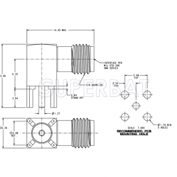 Series: SMA Termination Type: PCB Gender: Jack , Female Polarity: Standard Body Style: Right Angle Impedance: 50 Body Material: Brass Body Plating: Gold Frequency Range: DC-3GHz